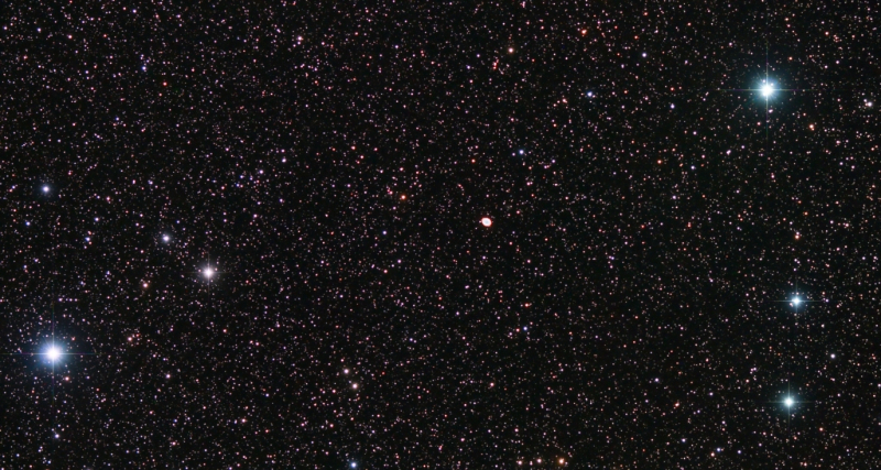 So what can we see in the imaging head image? The bottom two scopes are a pair of Sky90s with f#4.5 reducer/correctors, filter-wheels and Trius M26C CCDs attached. The odd-looking black thing in the centre is the counterweight for all the cameras, filter-wheels and anything else stuck on the back. Top left in the black box section is the recently installed Canon 200mm lens with Astromechanics focuser and 2600MC Pro CMOS camera. In the top right hand side port we have an 80mm William Optics refractor which is the guidescope with a Lodestar guide camera on the back. On the top of the black box, we have several intruders that the array did not originally include. On either edge is a Canon 200mm prime lens with Astromechanics focuser and 2600MC Pro CMOS camera. In between the 200mm lenses is a wide-angle viewscope which allows rough alignment for when the kit hasn’t been used in a while.