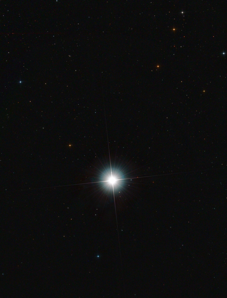 Dimming every other star in the area is the brightest star in the sky at magnitude -1.46, the brilliant blue Sirius in the constellation Canis Major 🙂