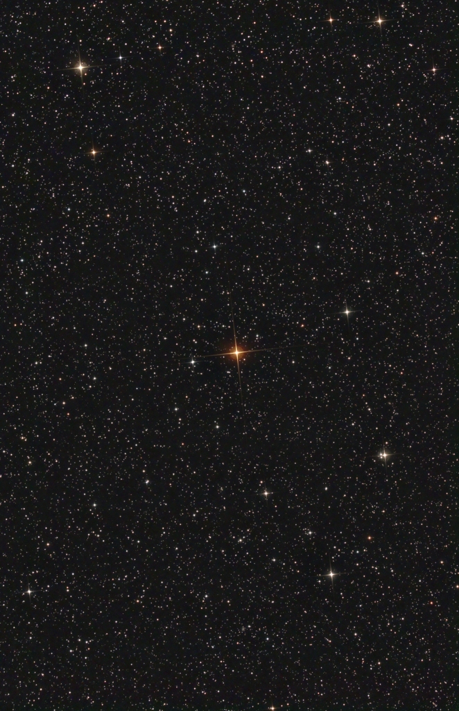 Moon blazing away overhead last night, but it was nice and clear up to around 11:00 p.m. So what to image? How about a nice Carbon star? This little beauty is UU Aurigae in the constellation Auriga (SAO 59280) and makes a fine centrepiece to this image. There are a couple of faint fuzzies to be found in the background as well, an unexpected bonus. 34 subs at 3-minutes per sub, dithered, taken using the Hyperstar III on the Celestron Nexstar GPS C11 with the M25C one-shot colour CCD.