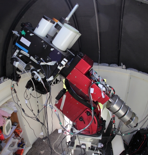 This time the in-storage Sky 90 and filter-wheel have gone back on.  It was taken off over a year ago as I got terrible star shapes with the M26C camera and I put this down to collimation being way out.  Realised later that it was the camera flatness that was way out, but I left the (flattened) camera on the TS80 and worked with that.  Checked the Sky 90 collimation while it was off the array and it looked alright to me.  So now need to see if it is indeed alright next imaging session.  Problem is, the computer that drives this imager decided at this very instant to pop its clogs – there’s always something!!!