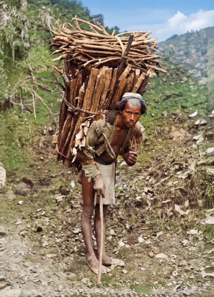 This is another one of Dad’s WWI images from the Himalayan foothills. The first image is the Grok colourised and cleaned up version of the original sepia print showing a wood-collector. The video below the still image was created by Grok which also added the appropriate sound track.