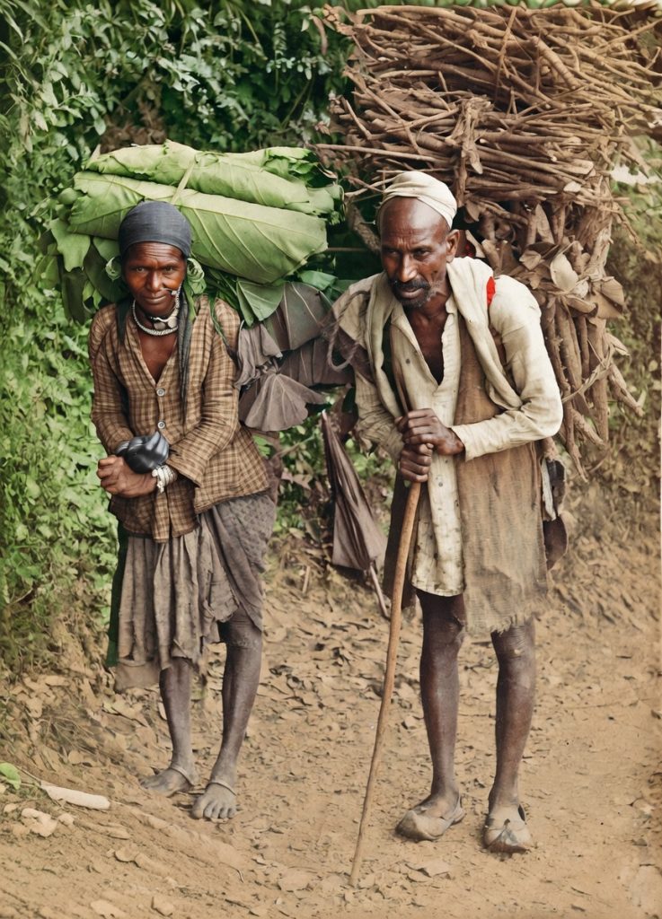 The first original sepia print was colourised and cleaned up by Grok, and then the image was animated by Grok who added a sound track complete with the sound of the wood-collectors walking stick hitting the hard dry earth.