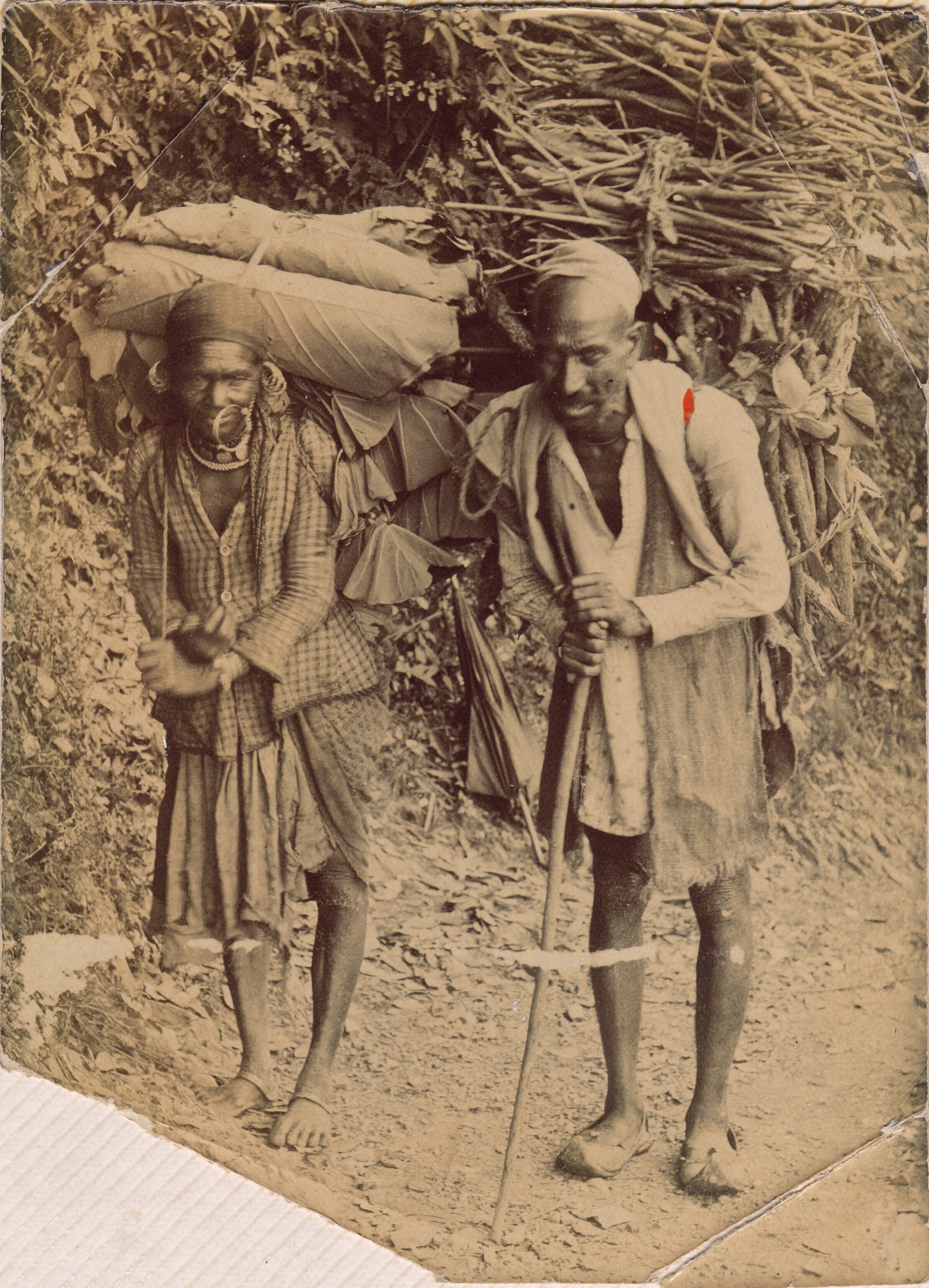 More from Dad’s WWI plate photography in the Himalayan foothills, this time we have a wood-collector and his Missus, who seems to be a leaf collector.